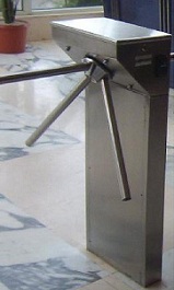 Tripod turnstile is generally used in simple dissuasion level access control of public passages. It is widely used in work attendance checking systems of factories, consumption systems of public institutions, access control of residential estates, ticket exit systems of scenic sports and other arenas, hand key management systems of construction sites and so on. The mechanical part of the turnstile contains an emergency control device, which allows automatic dropping of the tripod bar in the level position in case of power fail; when power supply is resumed; manual reset of the tripod bar is required. The turnstile has different optional configurations for the applications of all building conditions and for the control of all kinds of passage entrance-exits. Different identification systems (ID card, IC card, barcode, hand key, fingerprint, iris, etc. ) can be configured into the turnstile system. The turnstile can be connected to any kinds of controllers and various consumption devices.